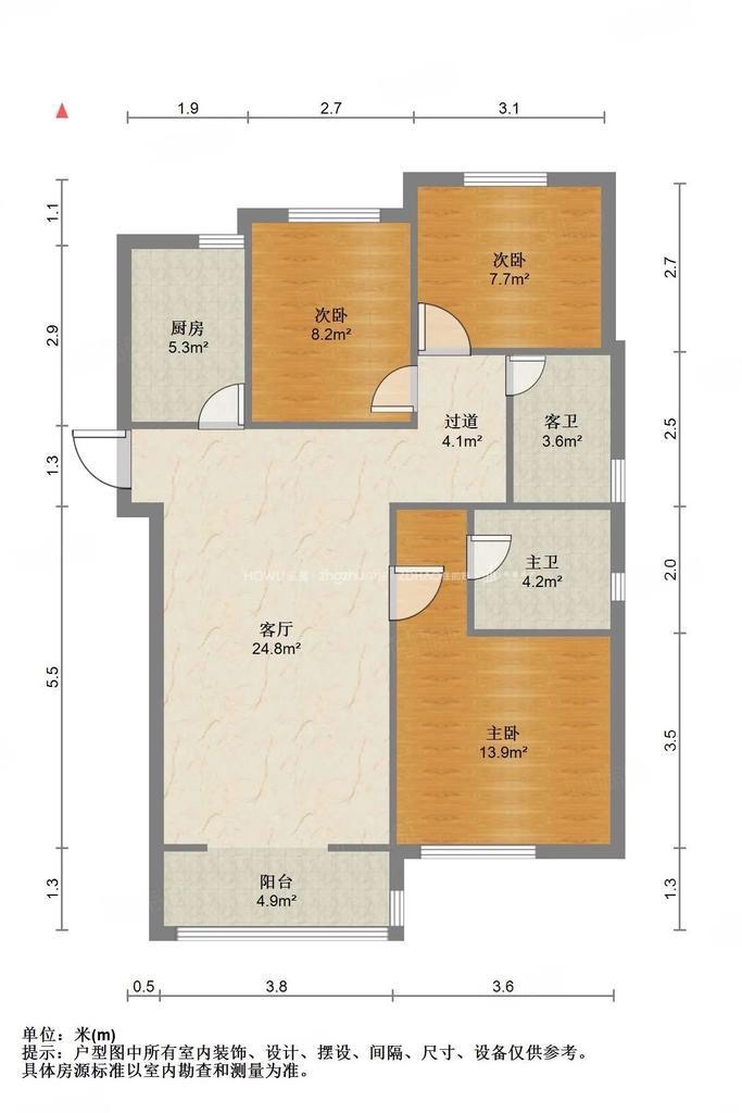 厅室3室2厅2卫1阳台