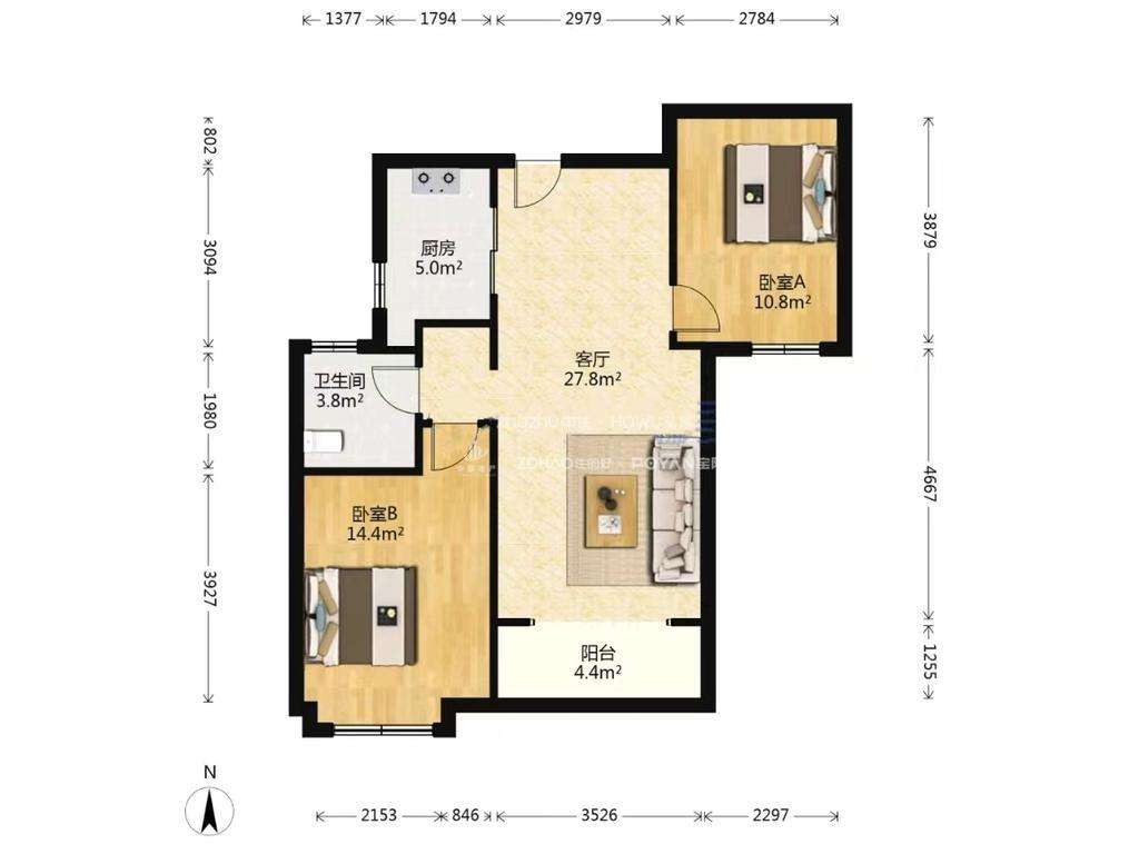 厅室2室2厅1卫1阳台