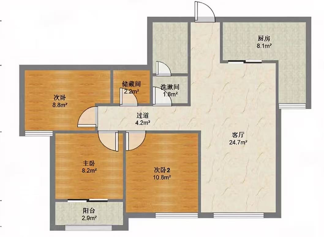 厅室3室2厅1卫1阳台