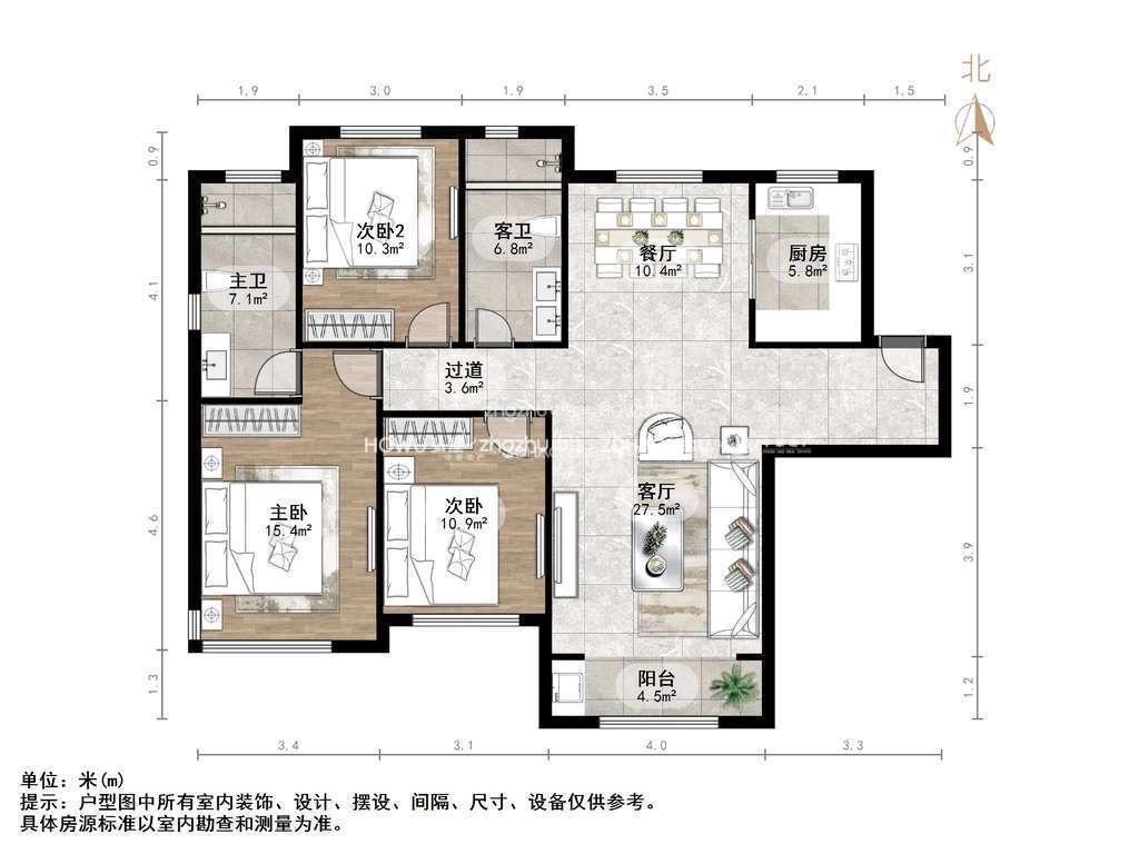 厅室3室2厅2卫2阳台