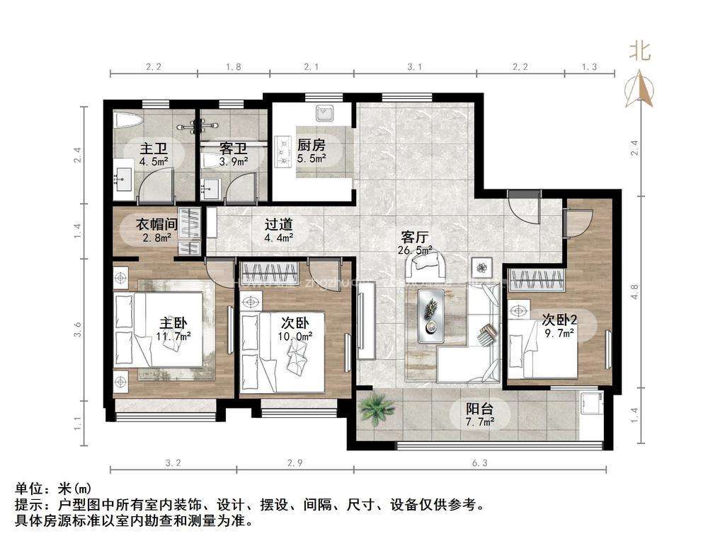 厅室3室2厅2卫1阳台