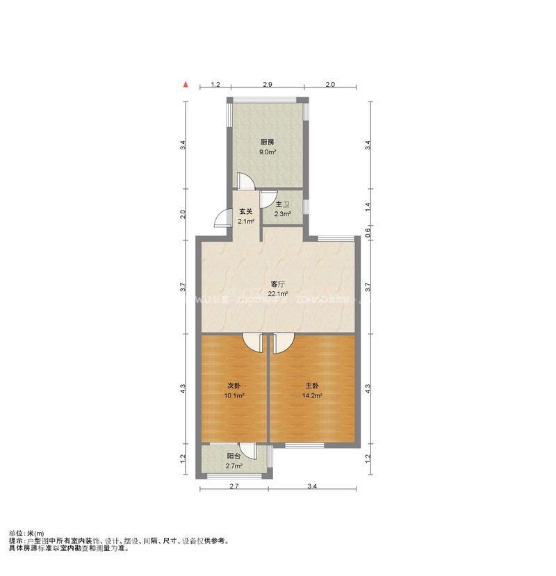 厅室2室1厅1卫1阳台