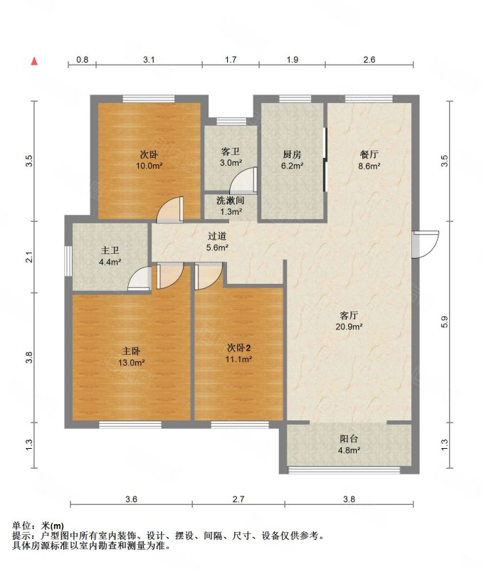 厅室3室2厅2卫1阳台