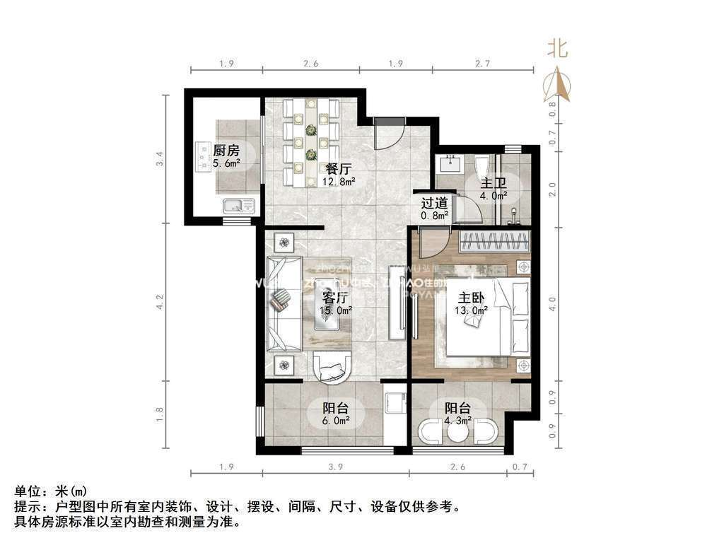 厅室1室2厅1卫1阳台