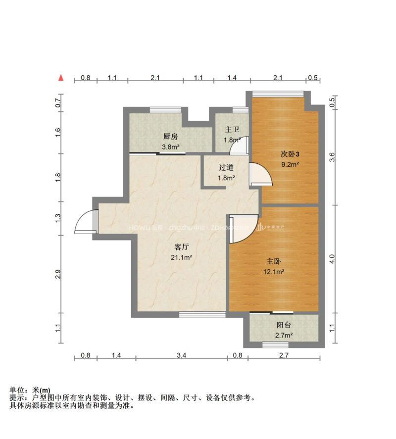 厅室2室1厅1卫1阳台