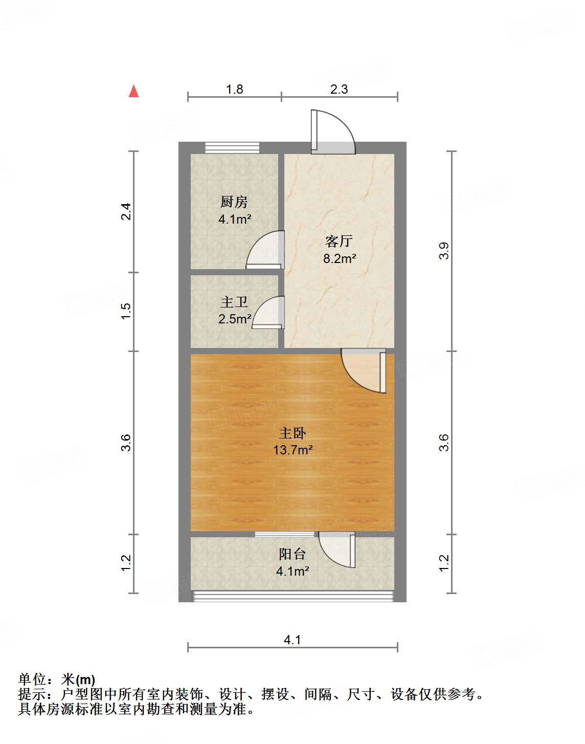 厅室1室1厅1卫1阳台