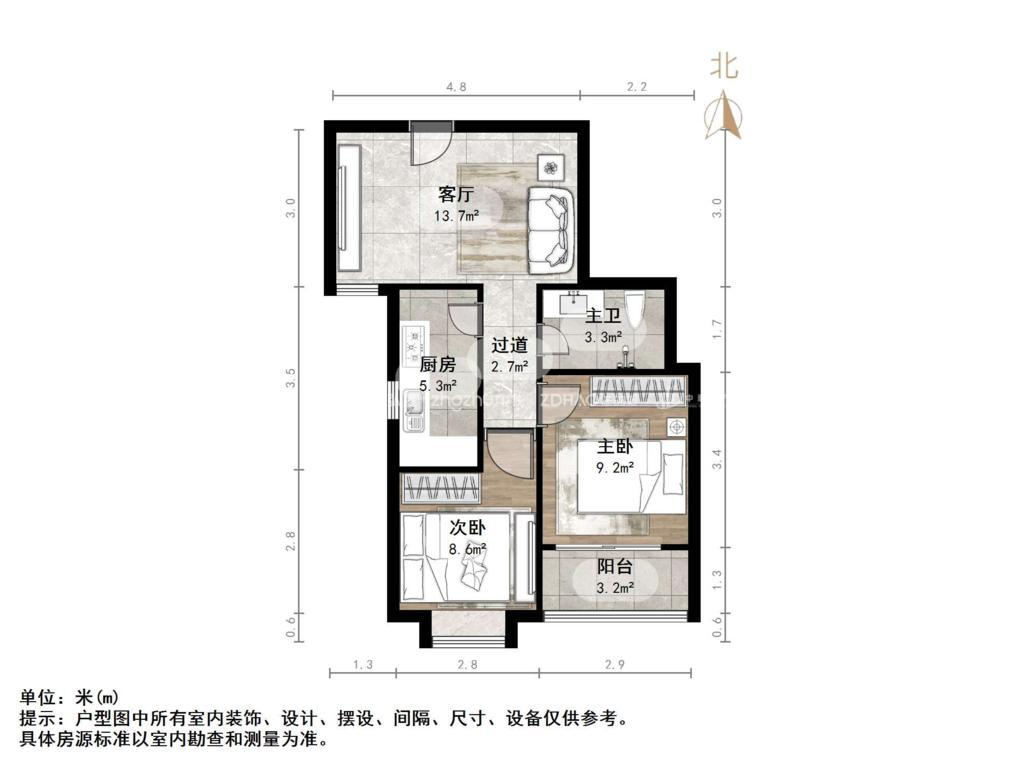 厅室2室1厅1卫1阳台