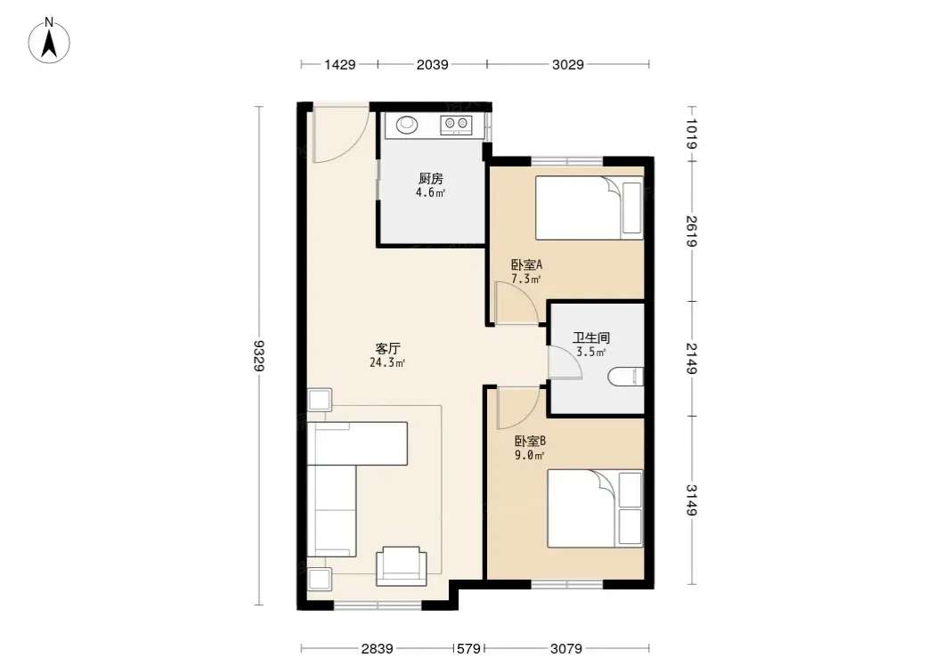 朝向南北 建筑面积92㎡