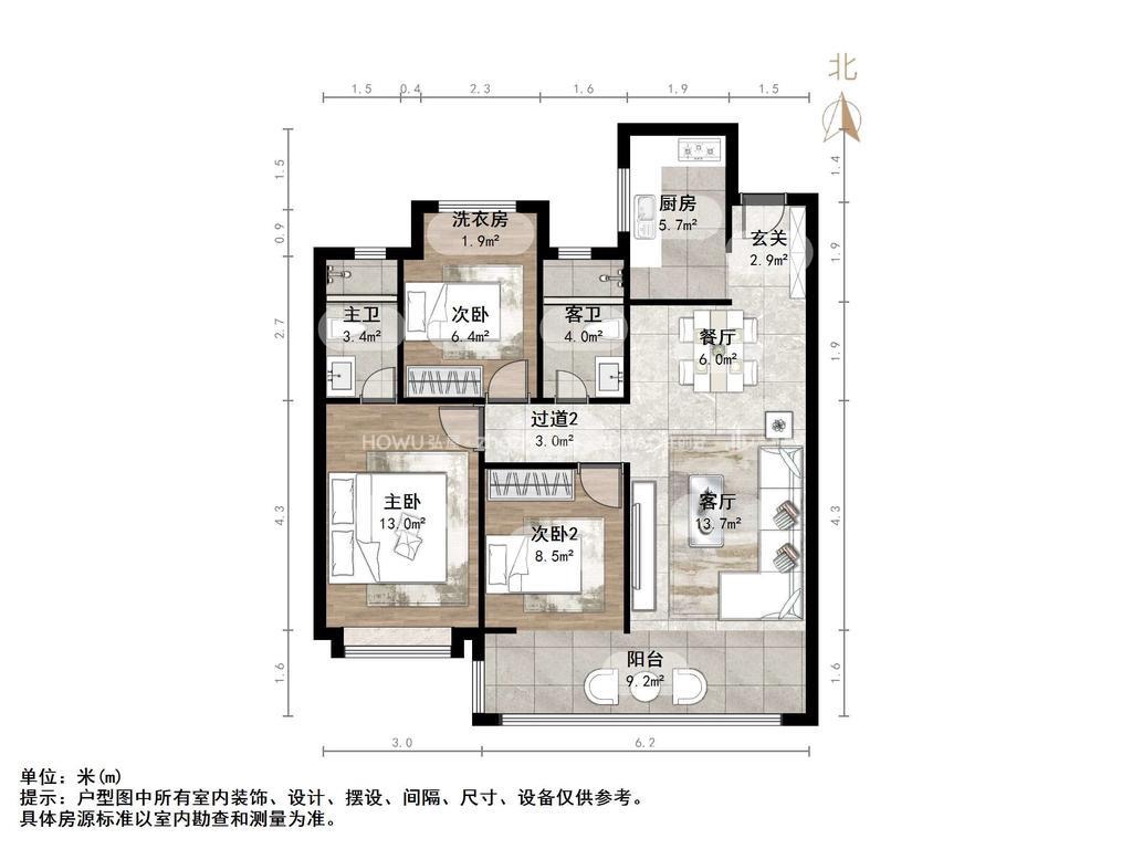 厅室3室2厅2卫2阳台