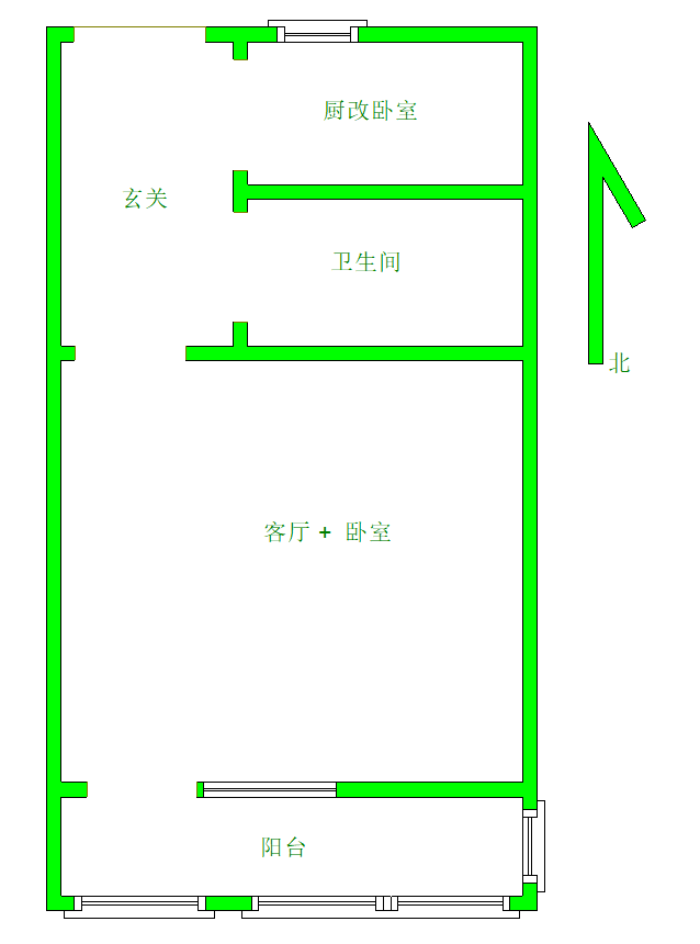 厅室1室1厅1卫1阳台