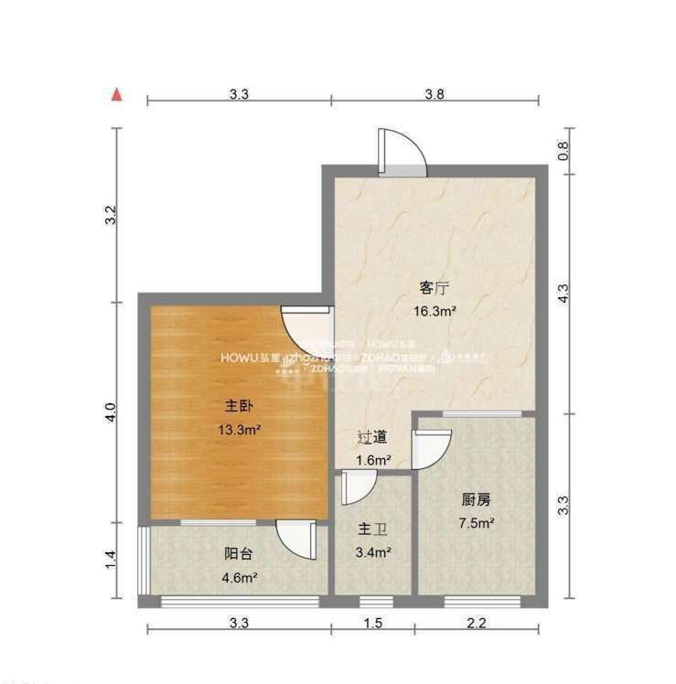 厅室1室1厅1卫1阳台