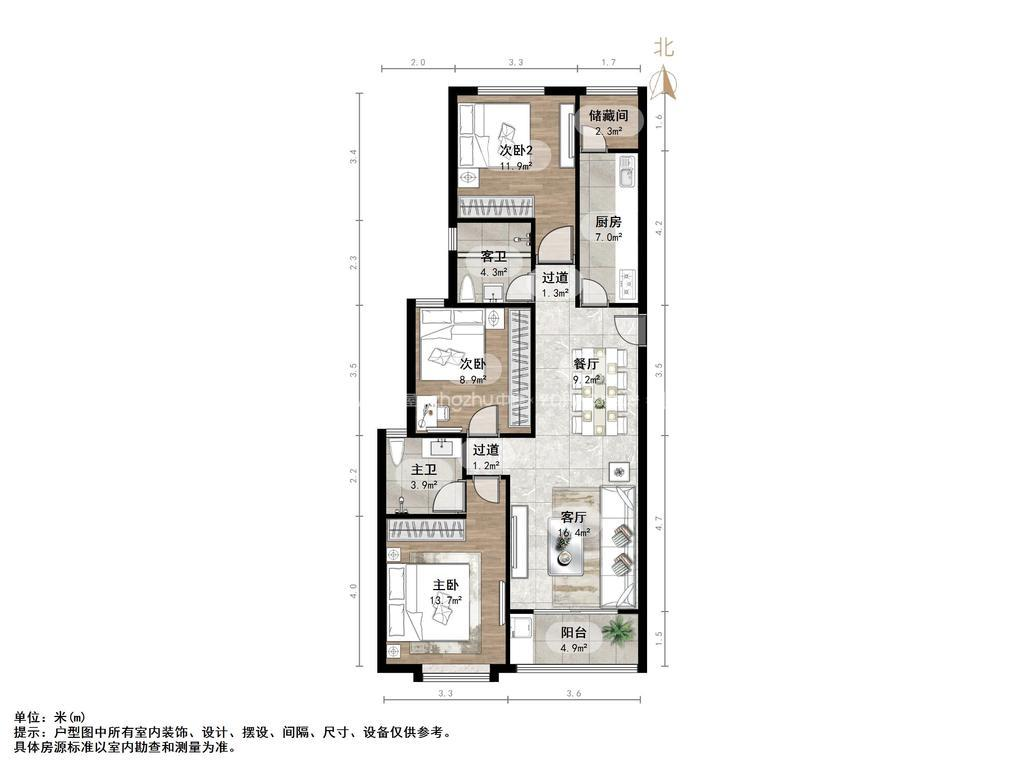 厅室3室2厅2卫1阳台
