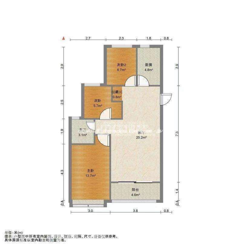 厅室3室2厅1卫1阳台