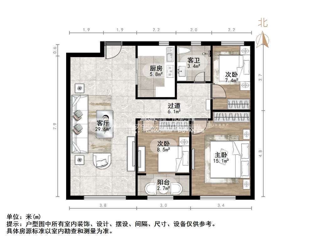朝向南北 建筑面积113㎡