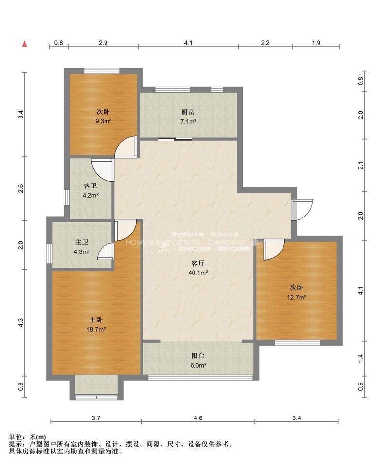 厅室3室2厅2卫1阳台