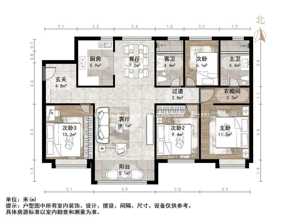 朝向南北 建筑面积128.18㎡