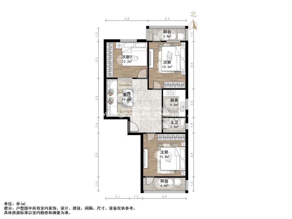 厅室3室1厅1卫2阳台