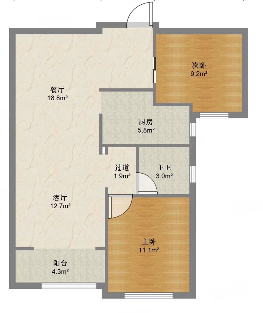 厅室2室1厅1卫1阳台