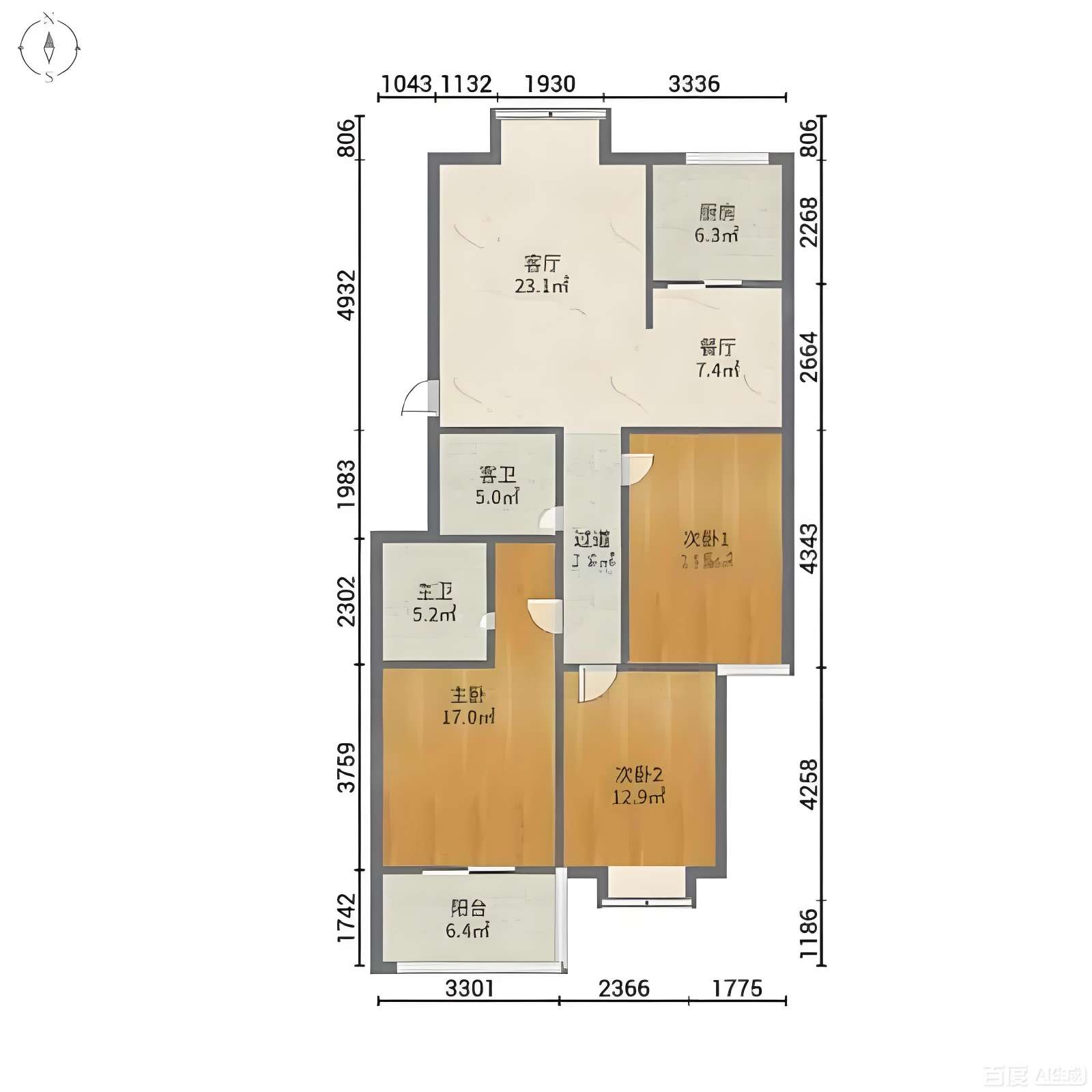 厅室3室2厅2卫1阳台