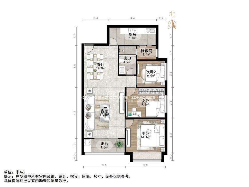 朝向南北 建筑面积105㎡