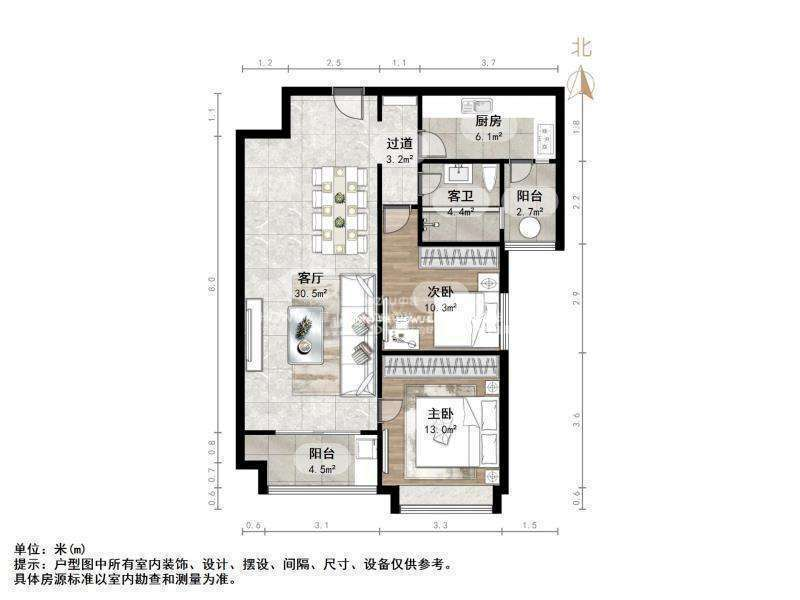 朝向南 建筑面积97.6㎡