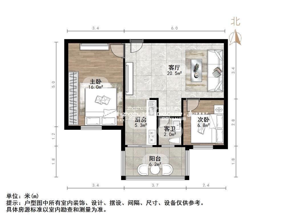 厅室2室1厅1卫1阳台