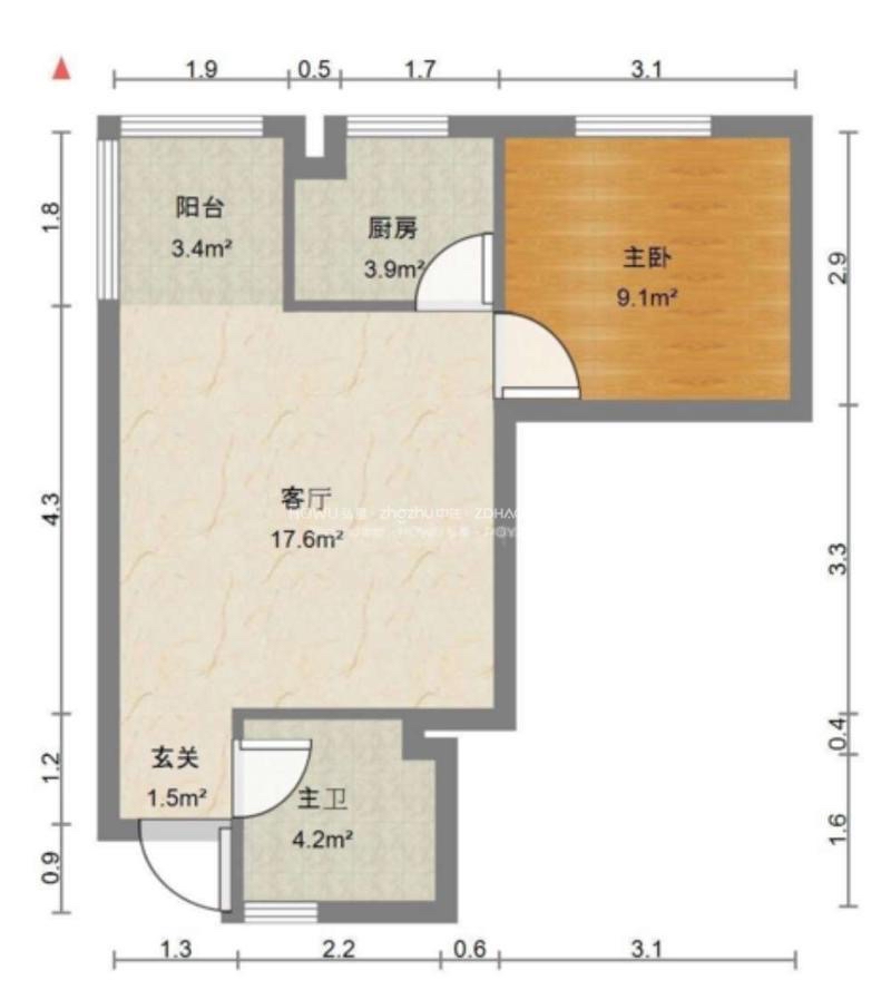 厅室1室1厅1卫1阳台