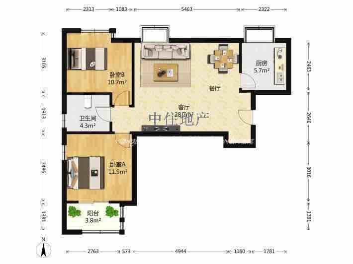 厅室2室2厅1卫1阳台