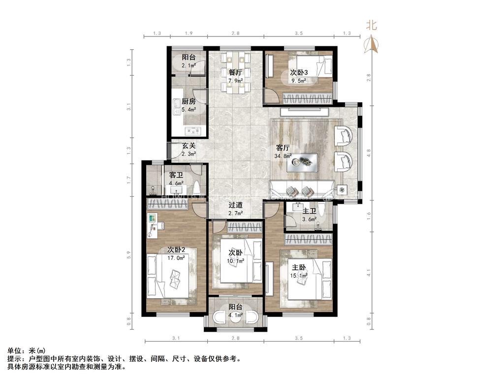 厅室4室2厅2卫2阳台