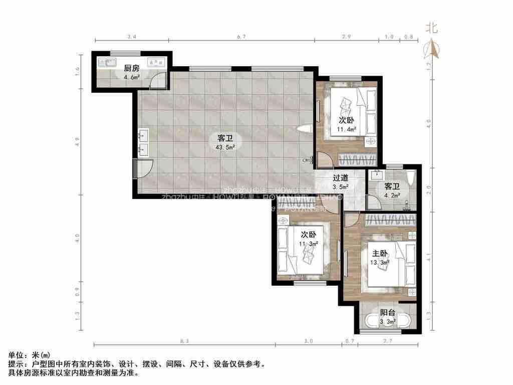 朝向南北 建筑面积121.1㎡