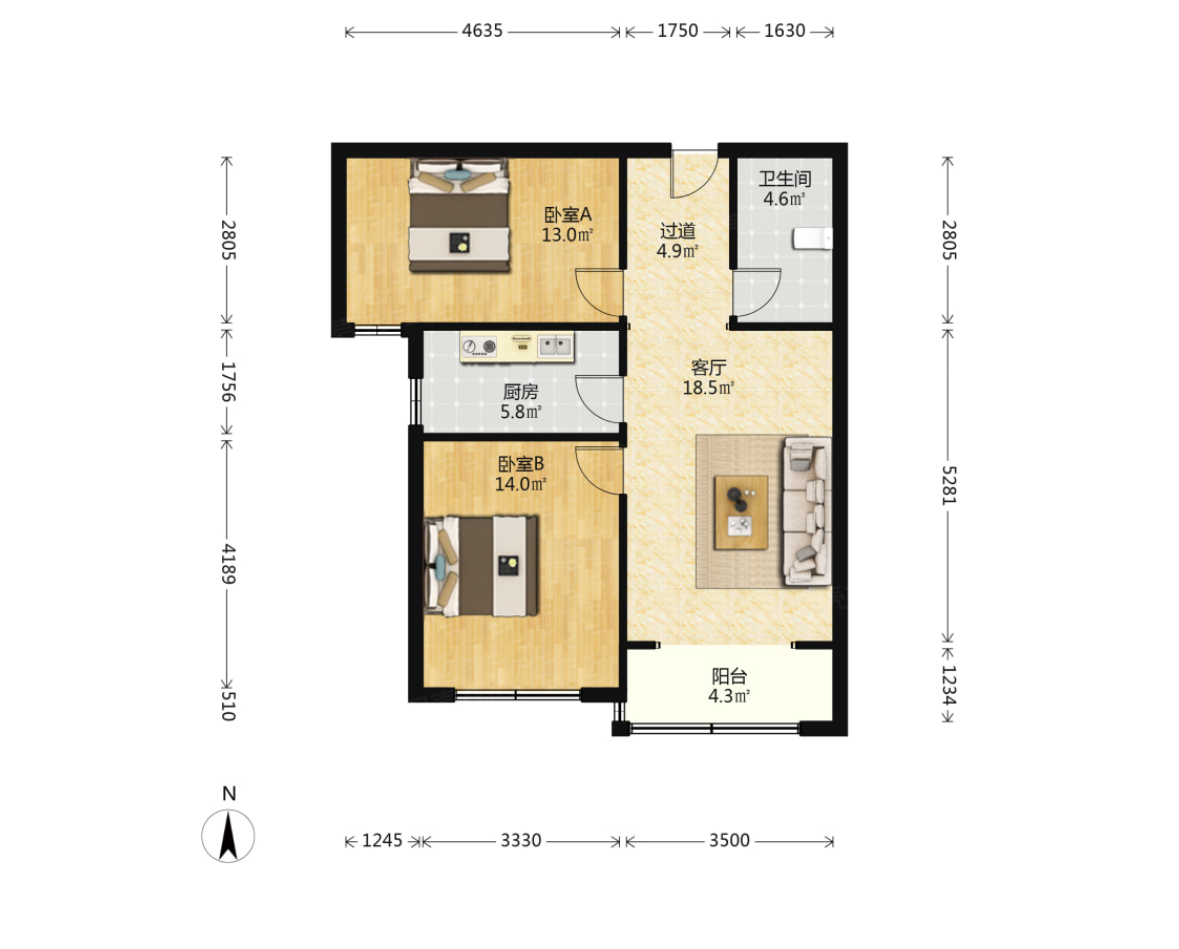 朝向南北 建筑面积89.44㎡