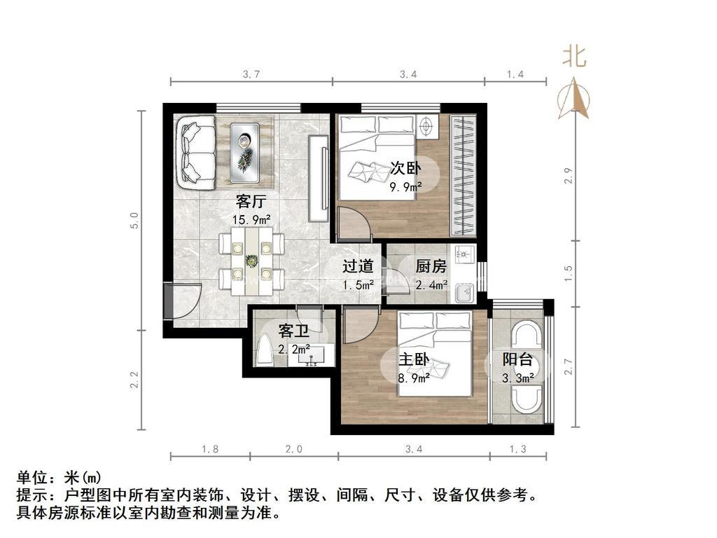 厅室2室1厅1卫1阳台