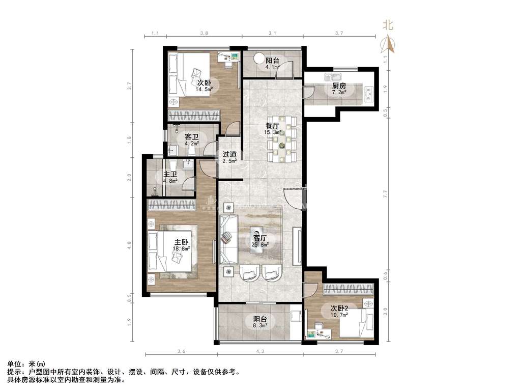 厅室3室2厅2卫2阳台