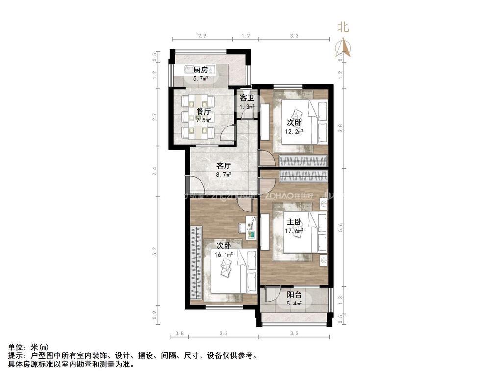 厅室3室2厅1卫0阳台