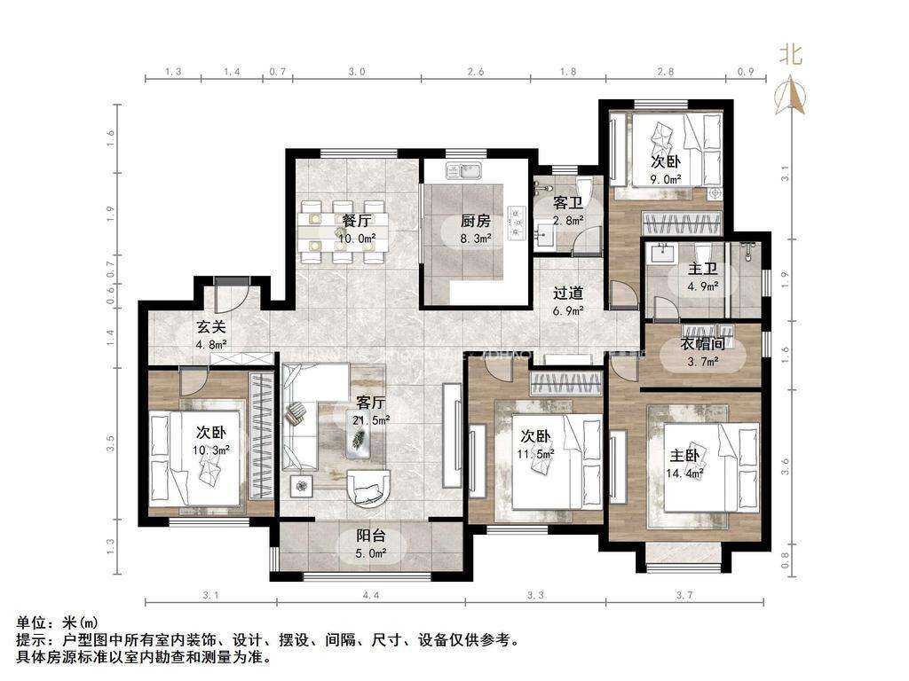 厅室4室2厅2卫1阳台