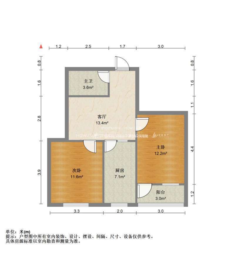 厅室2室1厅1卫1阳台