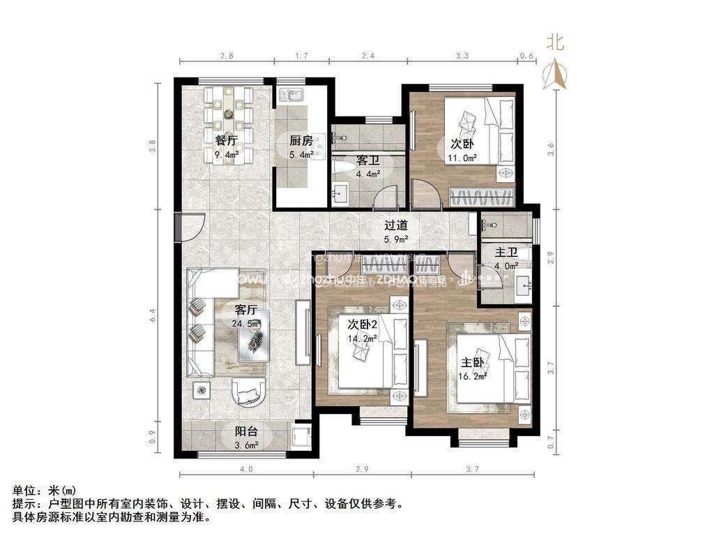 朝向南北 建筑面积126㎡