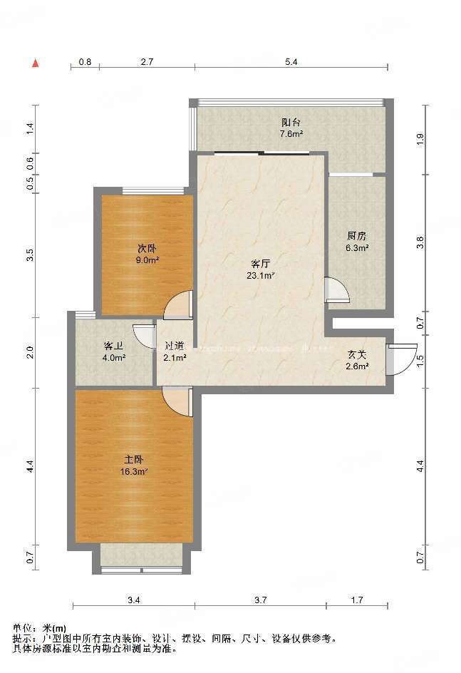 厅室2室1厅1卫0阳台