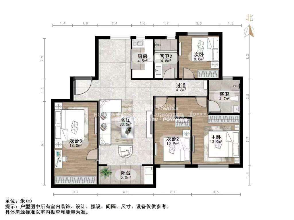 厅室4室2厅2卫1阳台