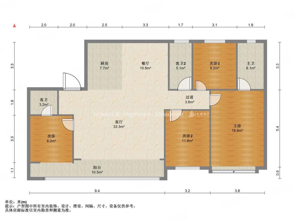 厅室4室2厅2卫2阳台