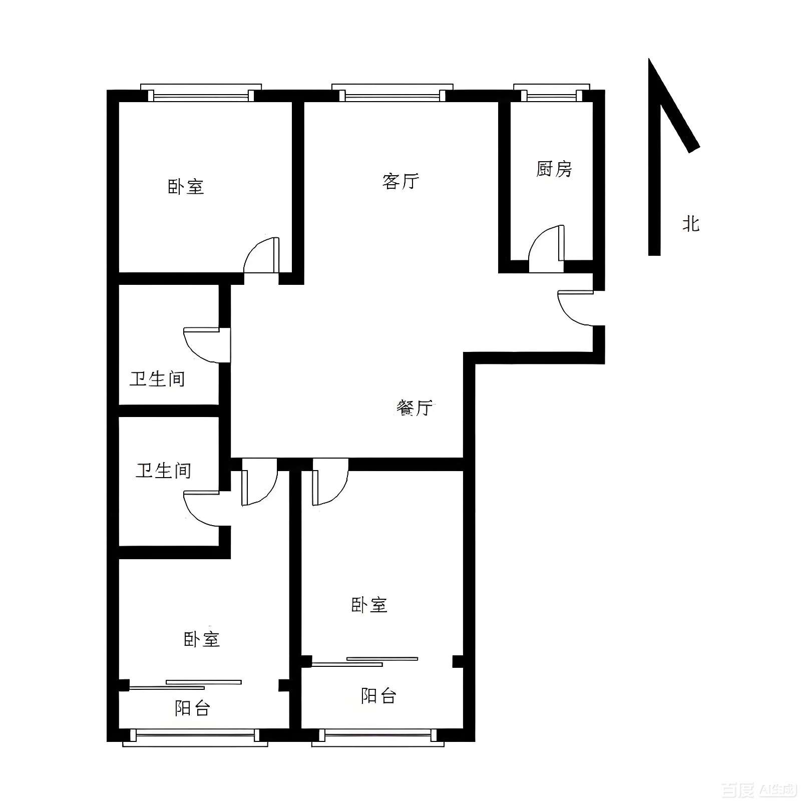 厅室3室2厅1卫1阳台