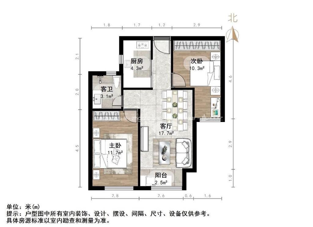 朝向南北 建筑面积80㎡