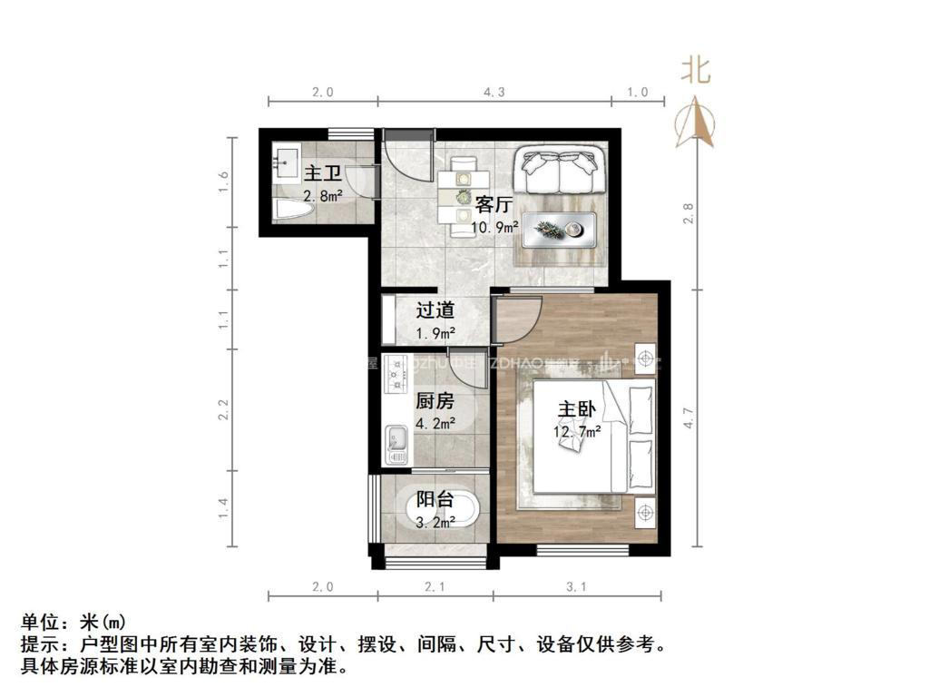 厅室2室1厅1卫1阳台