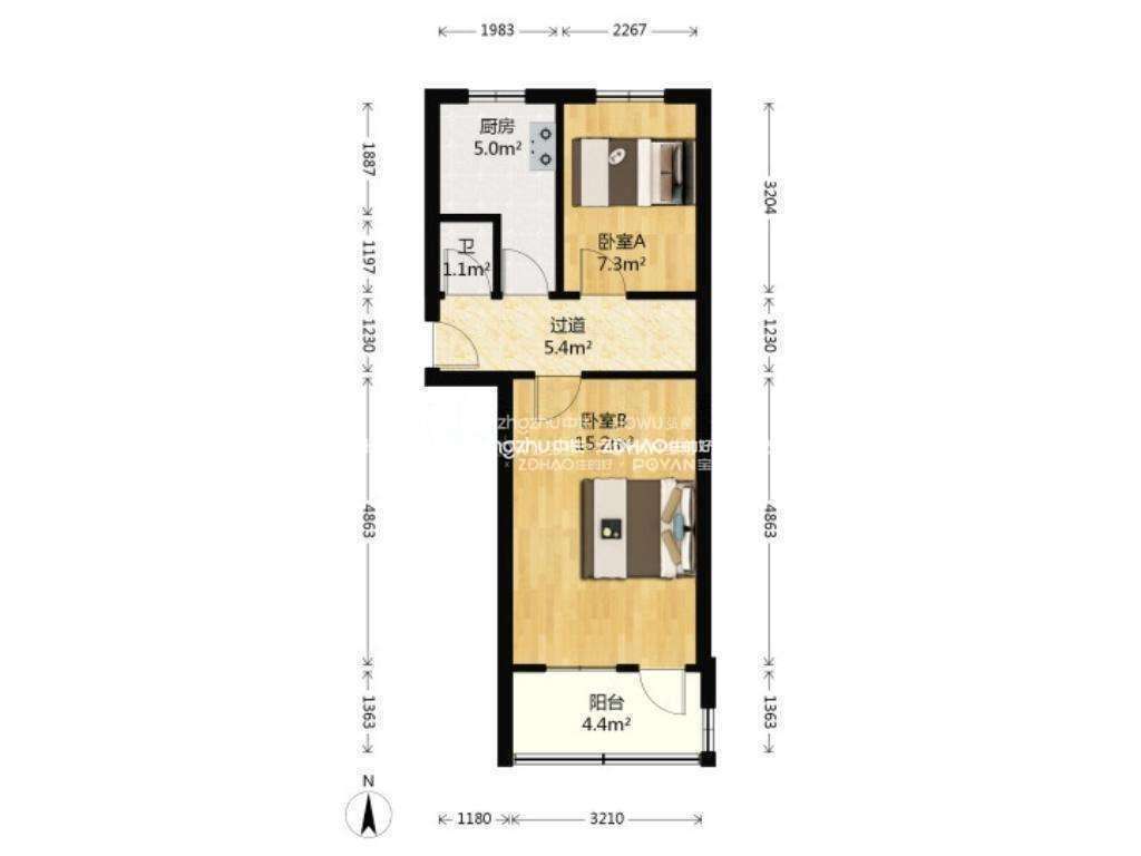 厅室2室1厅1卫1阳台