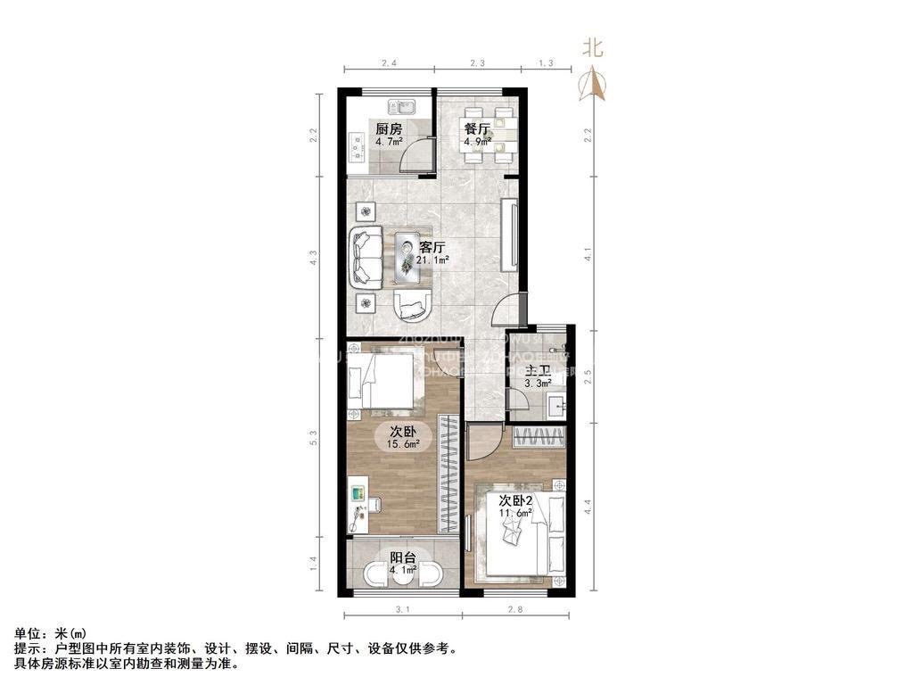 朝向南北 建筑面积90㎡