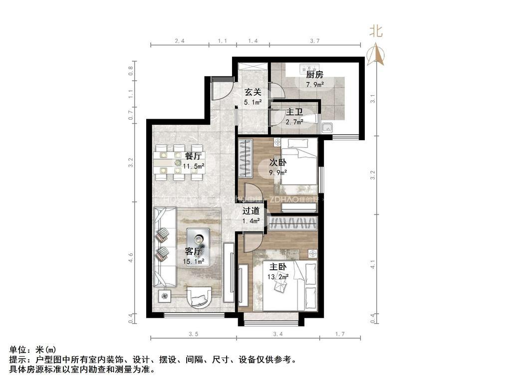 朝向 建筑面积88.85㎡