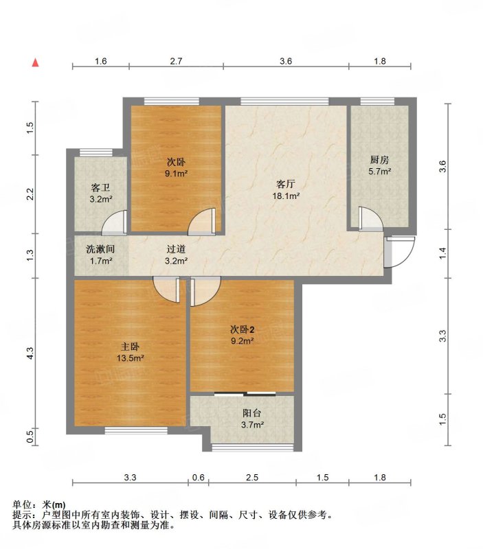 厅室3室1厅1卫1阳台
