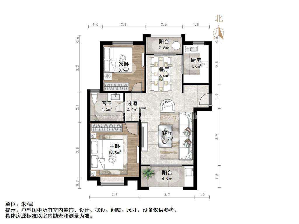 厅室2室2厅1卫1阳台
