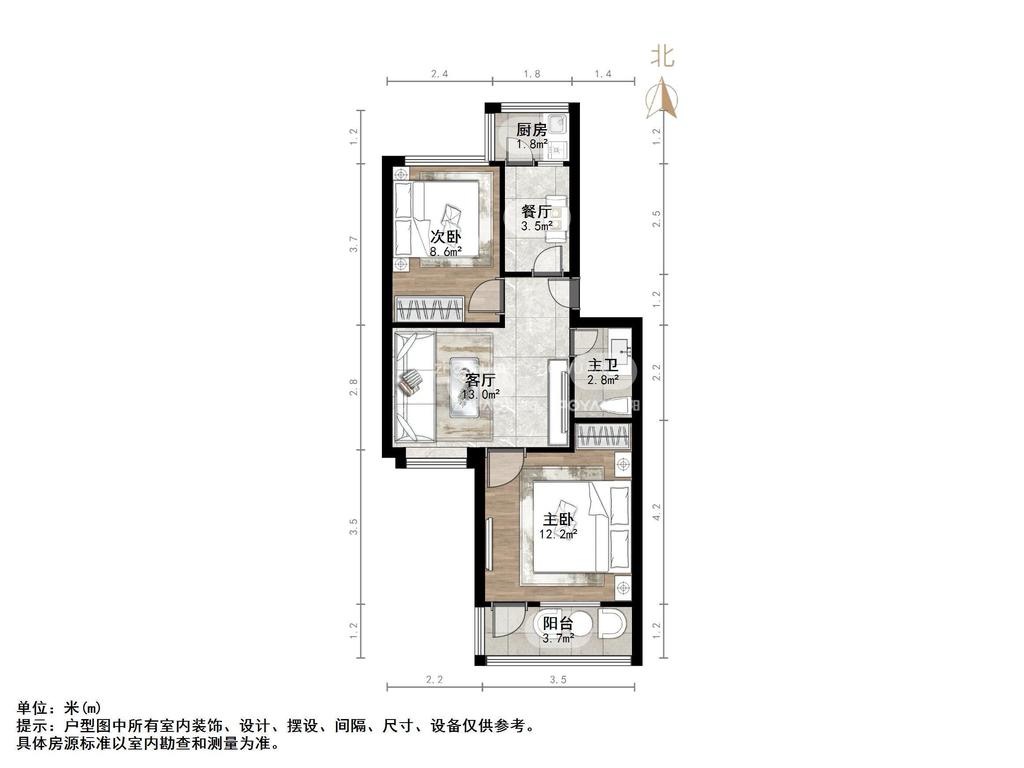 朝向南北 建筑面积62㎡