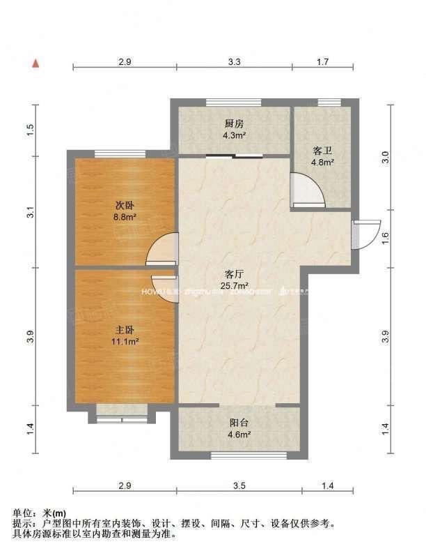 朝向南北 建筑面积90㎡